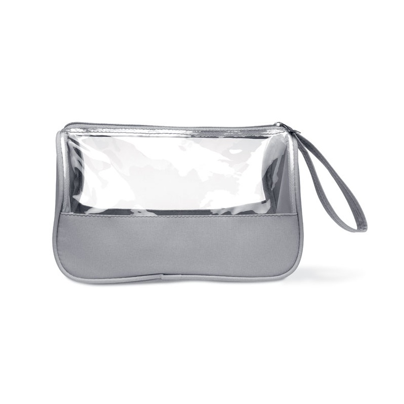 Toiletry bag in microfiber and PVC 6 Phthalate free, with wrist handle.