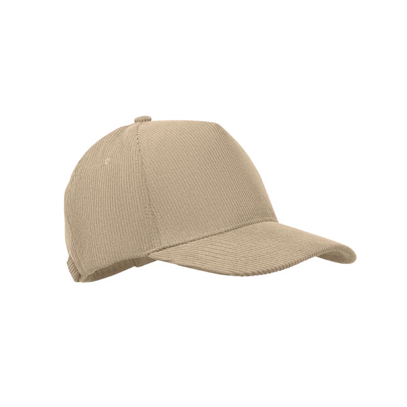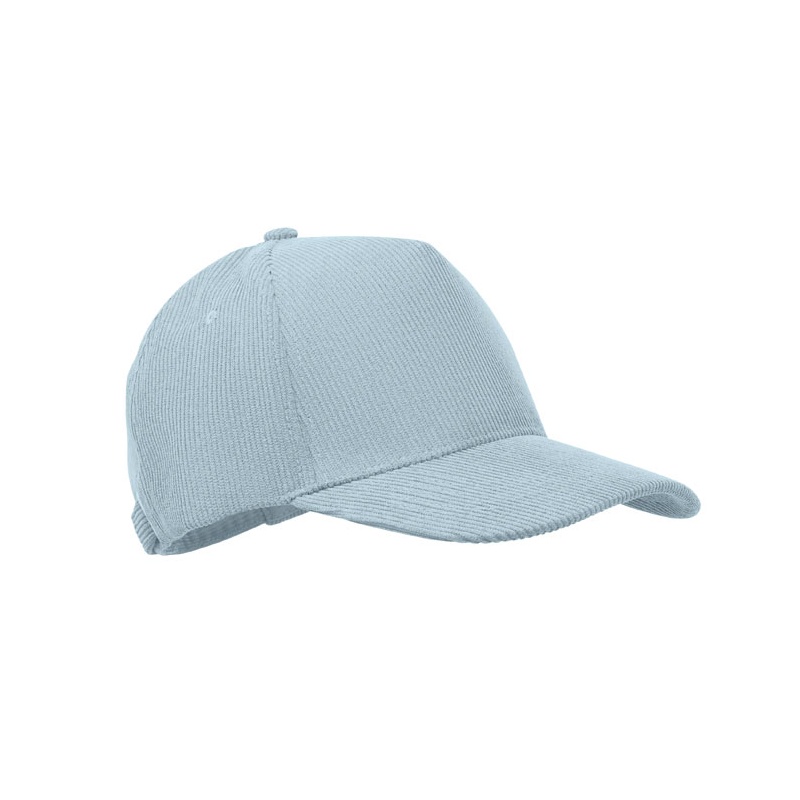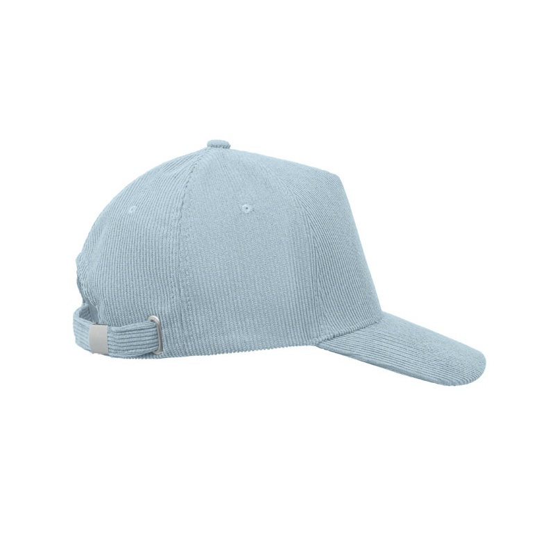5 panel baseball cap in polyester corduroy with adjustable metal buckle closure. 220 gr/m².